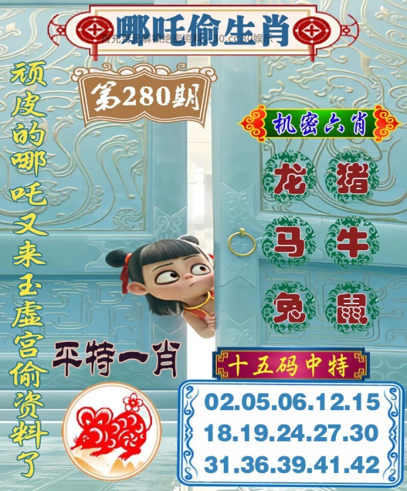 280期 | 七肖★羊鸡猪猴牛龙蛇 | 开:鼠42 |